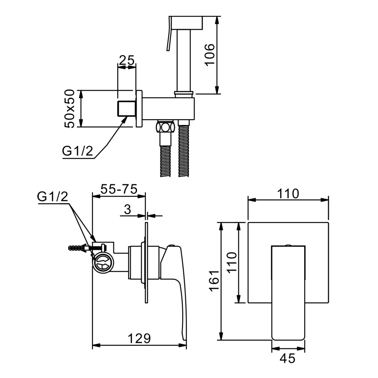 Смеситель с гигиеническим душем встраиваемый, черный Raglo, R01.53.06