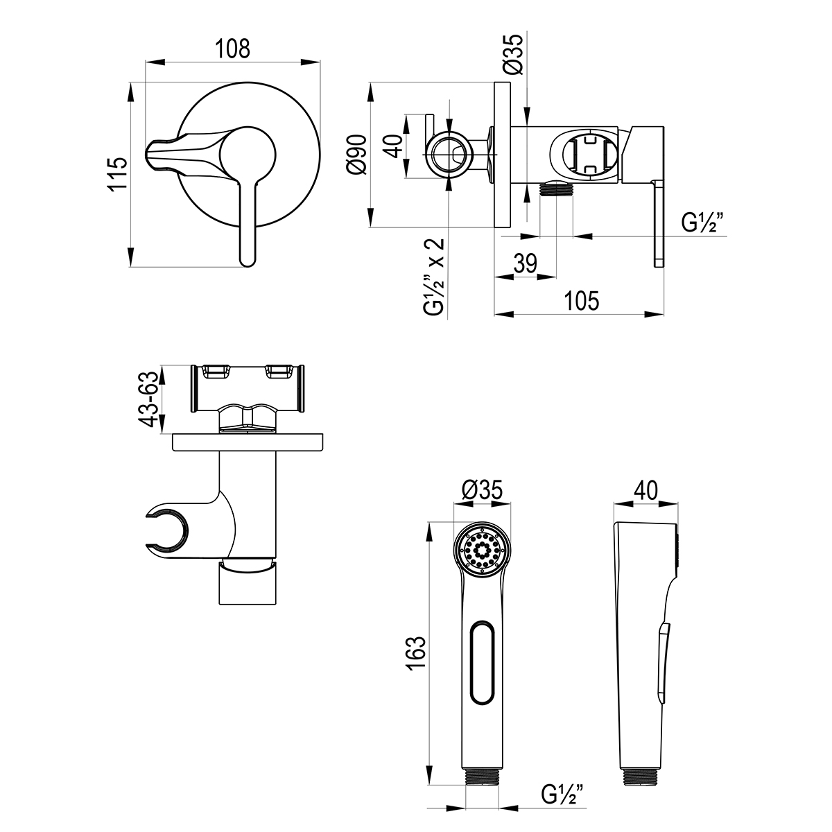 "Соло" LM7173C Смеситель с гигиеническим душем, встраиваемый, хром