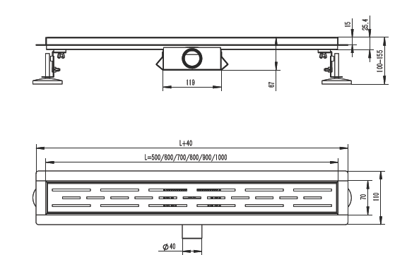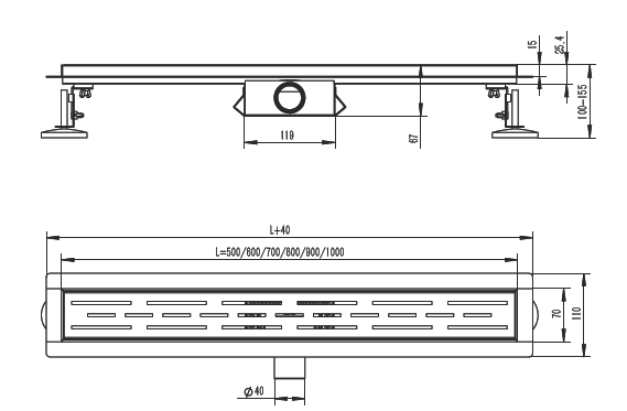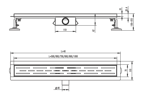 Трап для душа 70*700мм(поворот.сифон 360°), R652.70.05