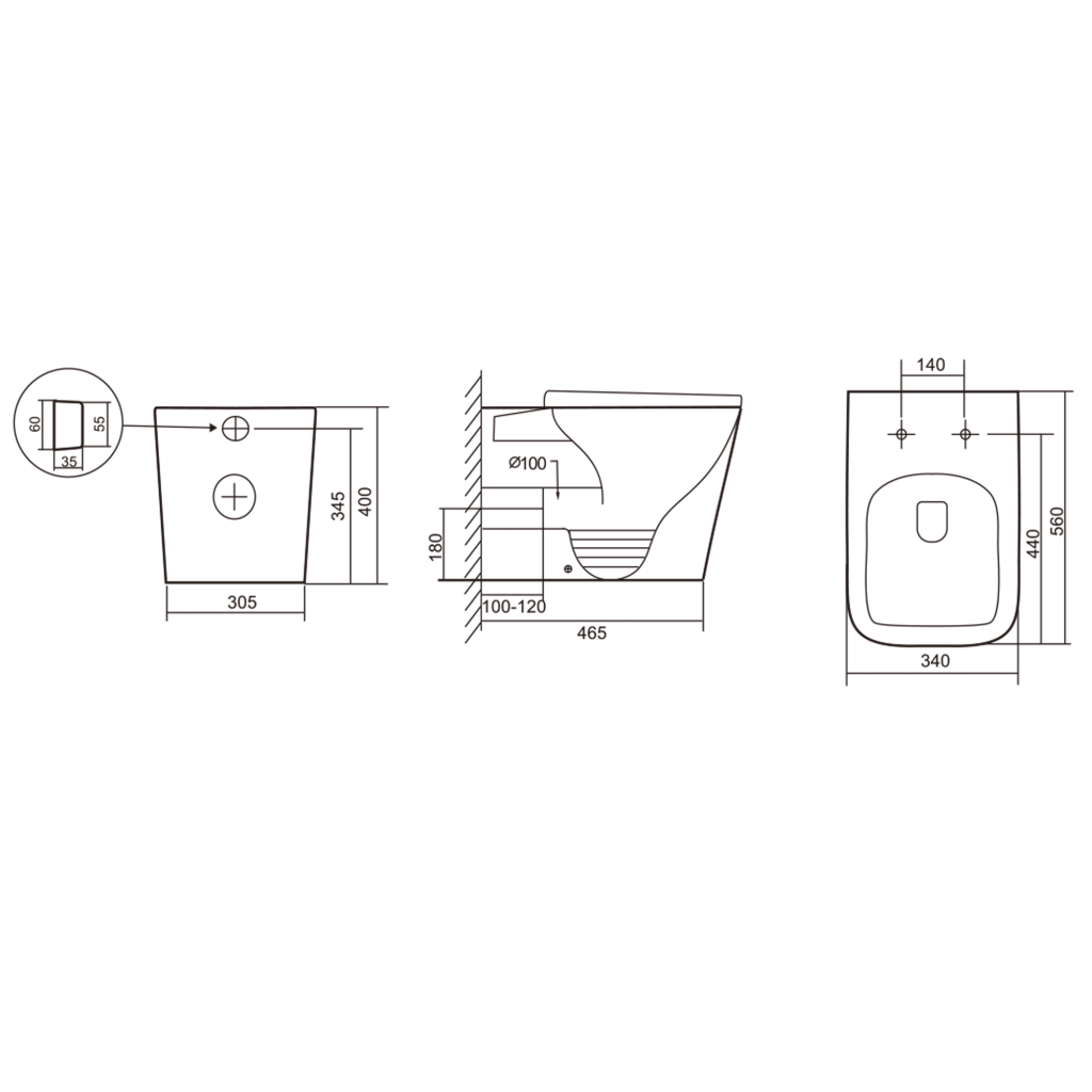 Унитаз подвесной белый IBERICA BLANCA, BILBAO MINI Tornado, IB.BLM.234.1B1